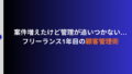 案件獲得のチャンスを逃さないためには、お問い合わせ対応の「仕組み化」が重要です。駆け出しの時に少しでも業務を「仕組み化」しておくことで、今後クライアントが増えたり引き合いが増えたりしたときに、管理に追われることなく落ち着いて対応できるでしょう。